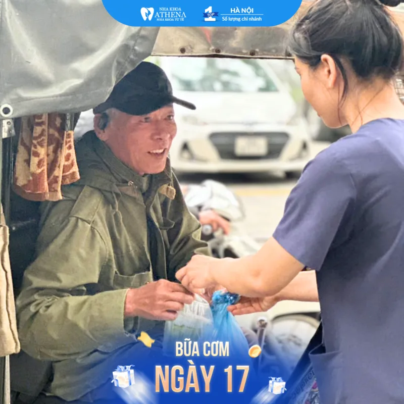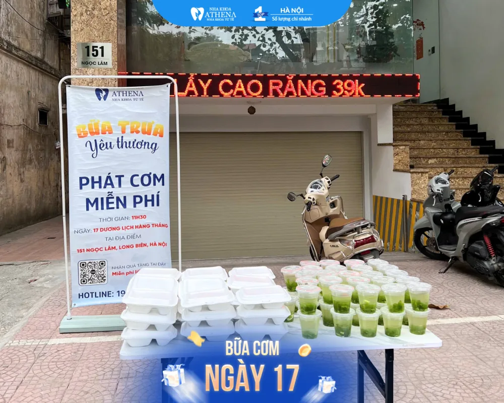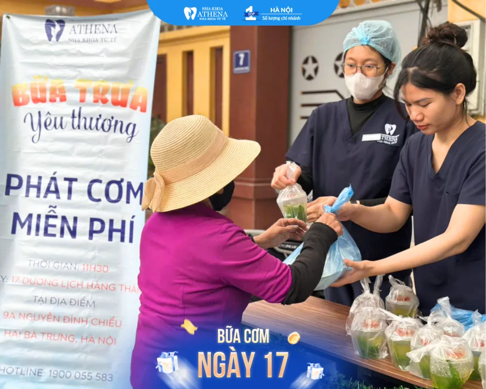 Bữa Cơm Yêu Thương là chương trình thiện nguyện định kỳ được Nha khoa Athena tổ chức vào ngày 17 hàng tháng. Đây là những bữa cơm 0đ dành tặng cho tất cả mọi người, đặc biệt là những người lao động, bà con đang vất vả mưu sinh giữa bao bộn bề cuộc sống.