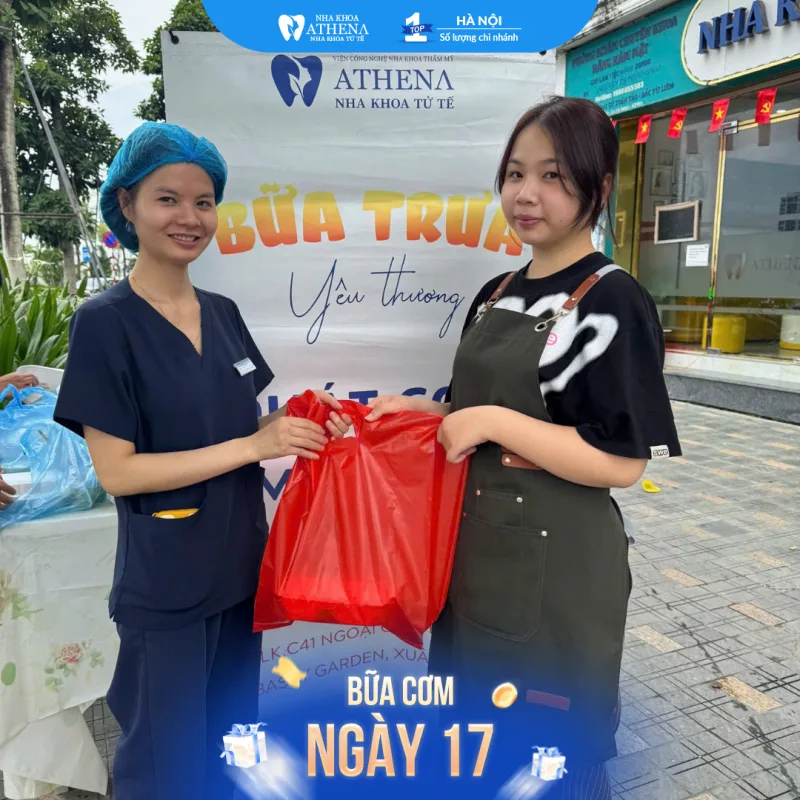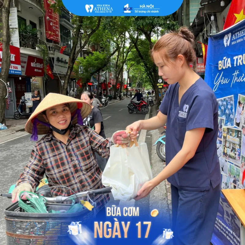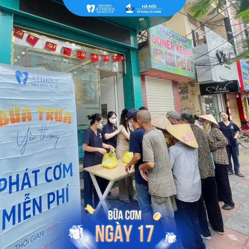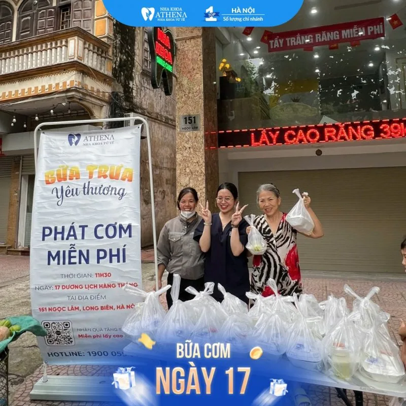 Với Athena, một nụ cười đẹp không chỉ đến từ hàm răng chắc khỏe mà còn được nuôi dưỡng từ sự đồng cảm, từ trái tim biết quan tâm đến người khác. Chính vì vậy, “Bữa Cơm Ngày 17” đã trở thành một phần trong triết lý hoạt động của phòng khám: đồng hành cùng cộng đồng không chỉ bằng chuyên môn nha khoa, mà còn bằng những hành động tử tế, thiết thực và gần gũi.