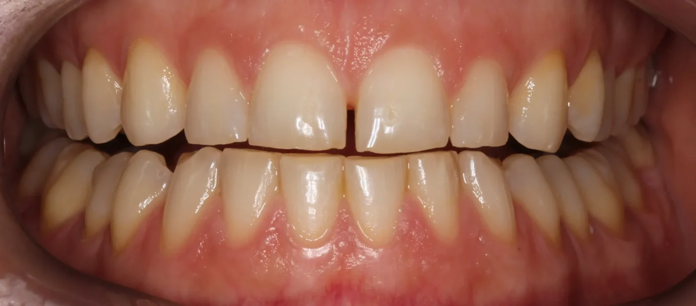 - Thay đổi màu sắc: Khi men răng mỏng đi, lớp ngà răng (có màu vàng) lộ ra khiến răng có vẻ sậm màu hơn.