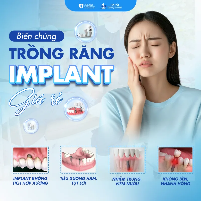 Trường hợp này bắt buộc phải nhổ implant, ghép xương và cấy lại → chi phí đội lên gấp 3 lần.