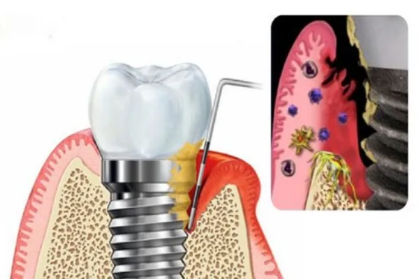 Một trong những tác hại của trồng răng khi chọn địa chỉ không uy tín là viêm nhiễm quanh implant.