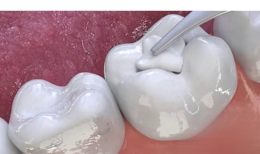 - Vệ sinh răng miệng: Làm sạch vùng răng cần trám, loại bỏ vết sâu hoặc mảng bám.