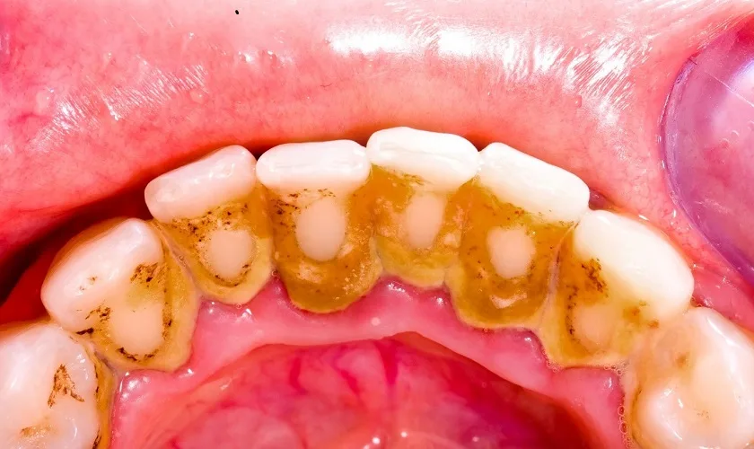 Vôi răng là những mảng bám cứng hình thành từ thức ăn thừa, vi khuẩn và khoáng chất trong nước bọt tích tụ lâu ngày trên bề mặt răng hoặc dưới nướu.